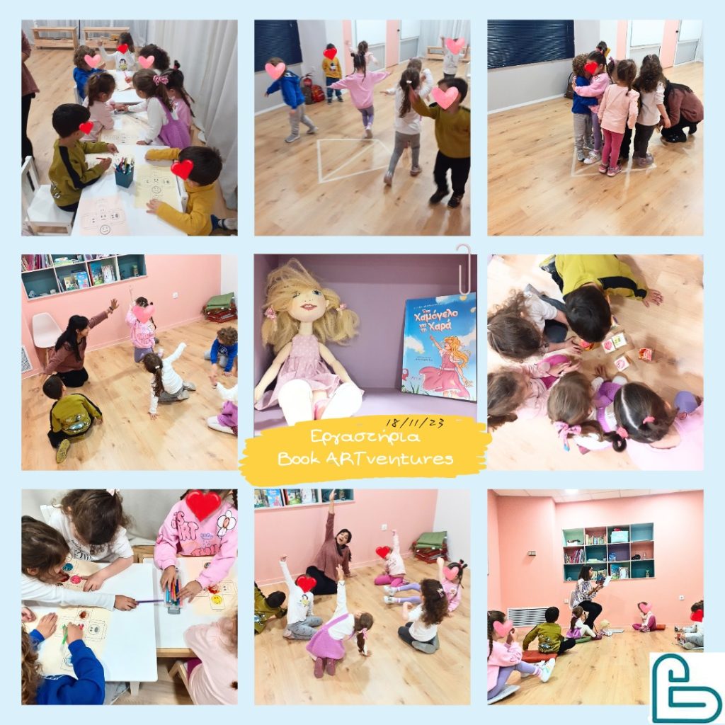 Τα Δημιουργικά Εργαστήρια Τέχνης & Φιλαναγνωσίας Book ARTventures δημιουργήθηκαν για να περάσουμε διασκεδαστικά με ένα βιβλίο, να μοιραστούμε τα συναισθήματα και τις ανησυχίες μας, να δώσουμε ζωή στους χαρακτήρες και κίνηση στις λέξεις. Κάθε αφήγηση ιστορίας πλαισιώνεται από κατασκευές, παιγνιώδεις δραστηριότητες, μουσικοκινητικά και θεατρικά παιχνίδια.